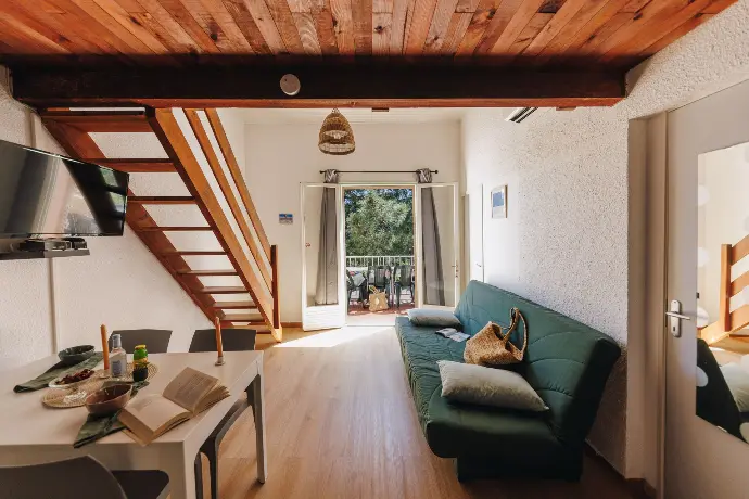 La résidence Le Télémaque propose des hébergements spacieux allant du T2 au T3 avec mezzanine, parfaits pour répondre à tous vos besoins de confort et d'espace. Chaque logement est pensé pour offrir un cadre de vie agréable, avec des espaces bien aménagés et lumineux. Profitez d'un environnement chaleureux et fonctionnel pour un séjour des plus agréables.
